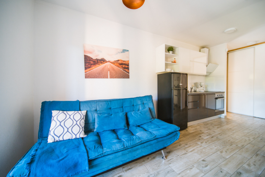 - Ležaji: bračni krevet u spavaćoj sobi + ležaj na razvlačenje u d.boravku