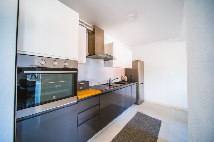 - Kuhinja: kompletno posuđe sa sredstvima za održavanje, perilica posuđa, pećnica, ploča za kuhanje, kuhalo za vodu, toster, frižider 210 L sa zamrzivačem
